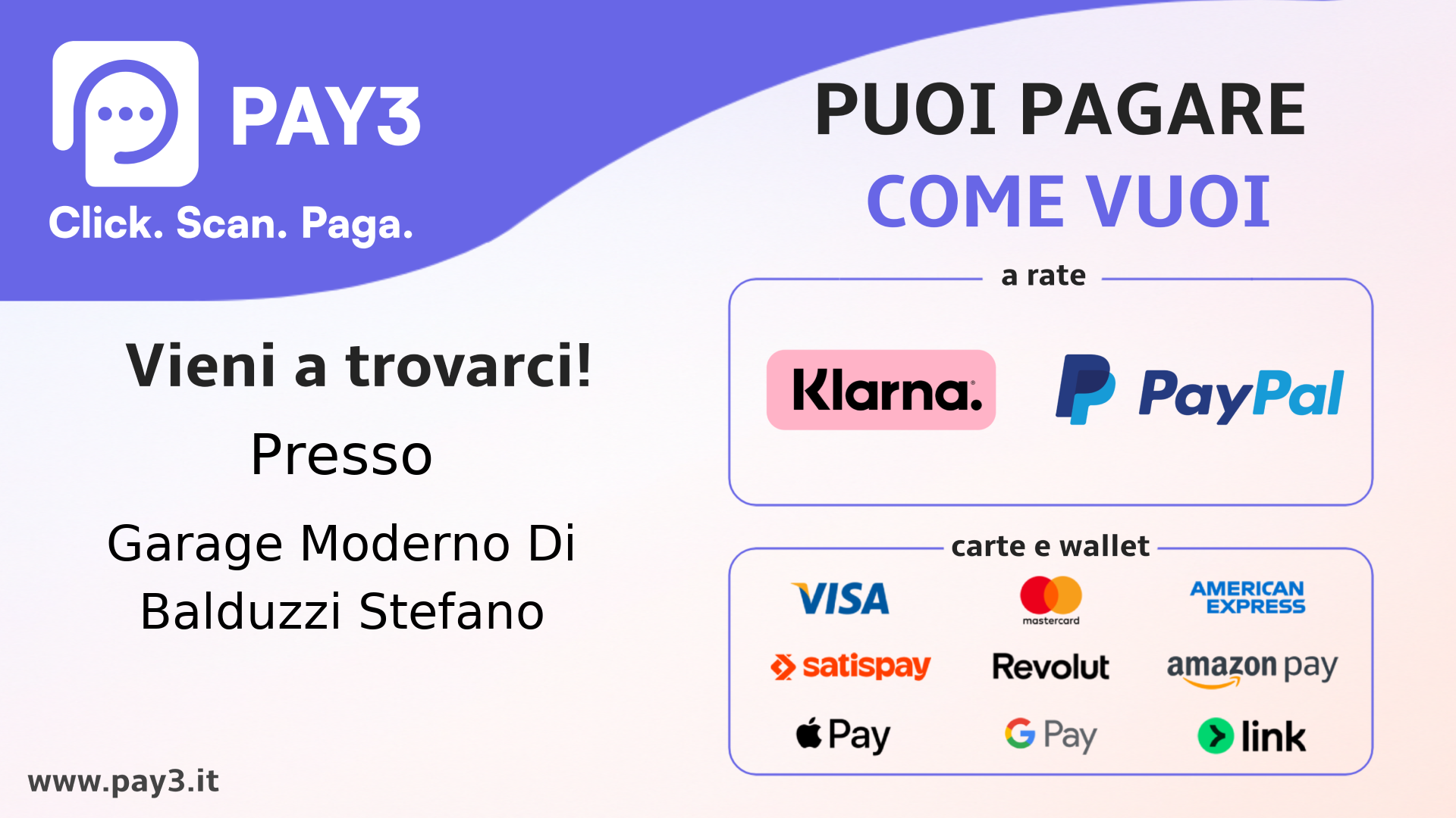 Informiamo i nostri clienti che abbiamo la possibilità di offrire pagamenti rateali tramite PAYPAL, KLARNA e Wallet!